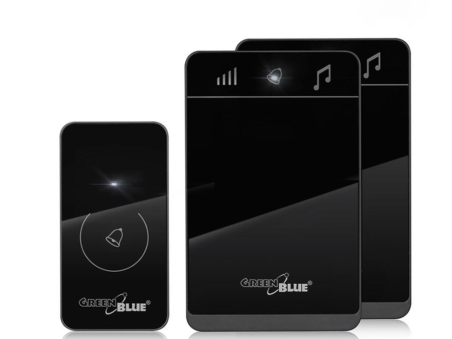 Dzwonek bezprzewodowy GreenBlue GB112 nadajnik-2 odbiorniki, 52 melodie czarny dotykowy, zasięg 150m