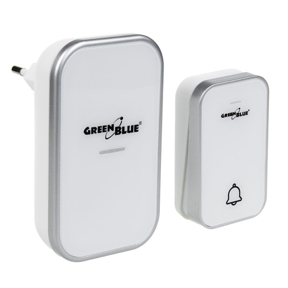 Dzwonek bezprzewodowy GreenBlue GB111 W nadajnik-odbiornik, 38 melodii biały dotykowy zasięg 150m