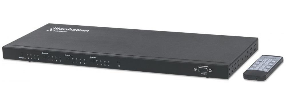 Przełącznik / splitter matrycowy Manhattan 207904 4x4 HDMI Matrix 1080p z pilotem